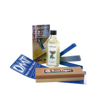 Brusný set, kombinovaný kámen, olej a DVD - 3 ks